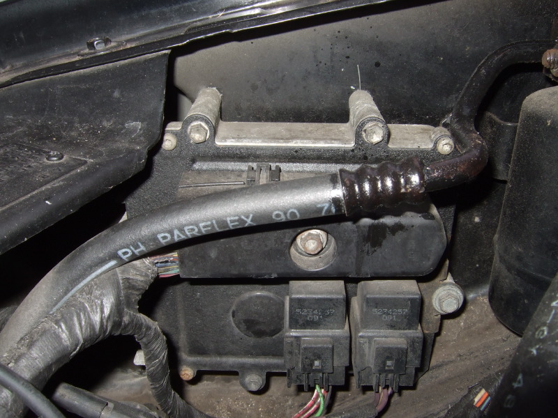 Auf dem Bild sieht man auf dem Gehäuse des TCM. Auf diesem ist das EATX-Relais und das Relais für den Rückfahrscheinwerfer montiert. Diese beiden Relais sind untereinander austauschbar. Bei einem Fehler kann man somit schnell deren Funktion prüfen.