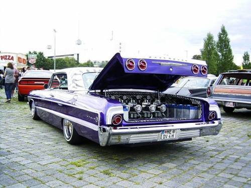 Dann gesellten sich noch drei weitere Barone hinzu, so dass unsere Fahrzeuge in der Masse nicht gleich übersehen wurden. Viele Zuschauer waren begeistert und sprachen mich auf "das schöne Cabrio" an. Es gab natürlich auch die typische Lästerfraktion. Aber auf meine Frage: "Mit was für einem Wagen bist du denn hier? Chevy?" kam nur die Antwort: "Mit gar keinem"... - Aja, dann ist ja alles klar. Ich hatte zumindest das Gefühl, dass die Einstellung unserer Barone gegenüber besser geworden ist, als auf meinen ersten Treffen 1999. Es gab natürlich viele schöne US-Showcars. Lowrider, Hot Rods, Limos und natürlich auch die Custom-Szene war vertreten.