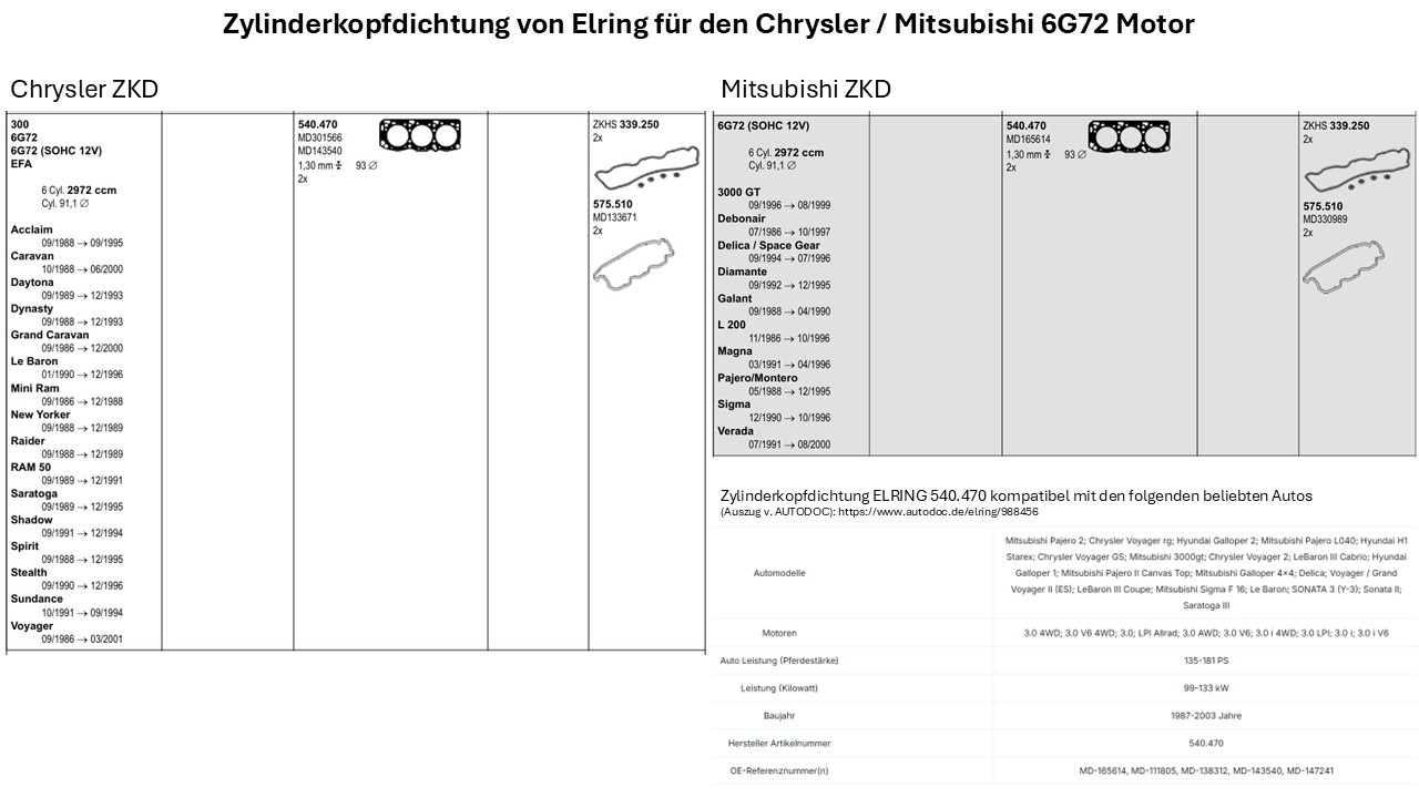 Schlüsselwörter:Zylinderkopfdichtung / Elring / 6G72