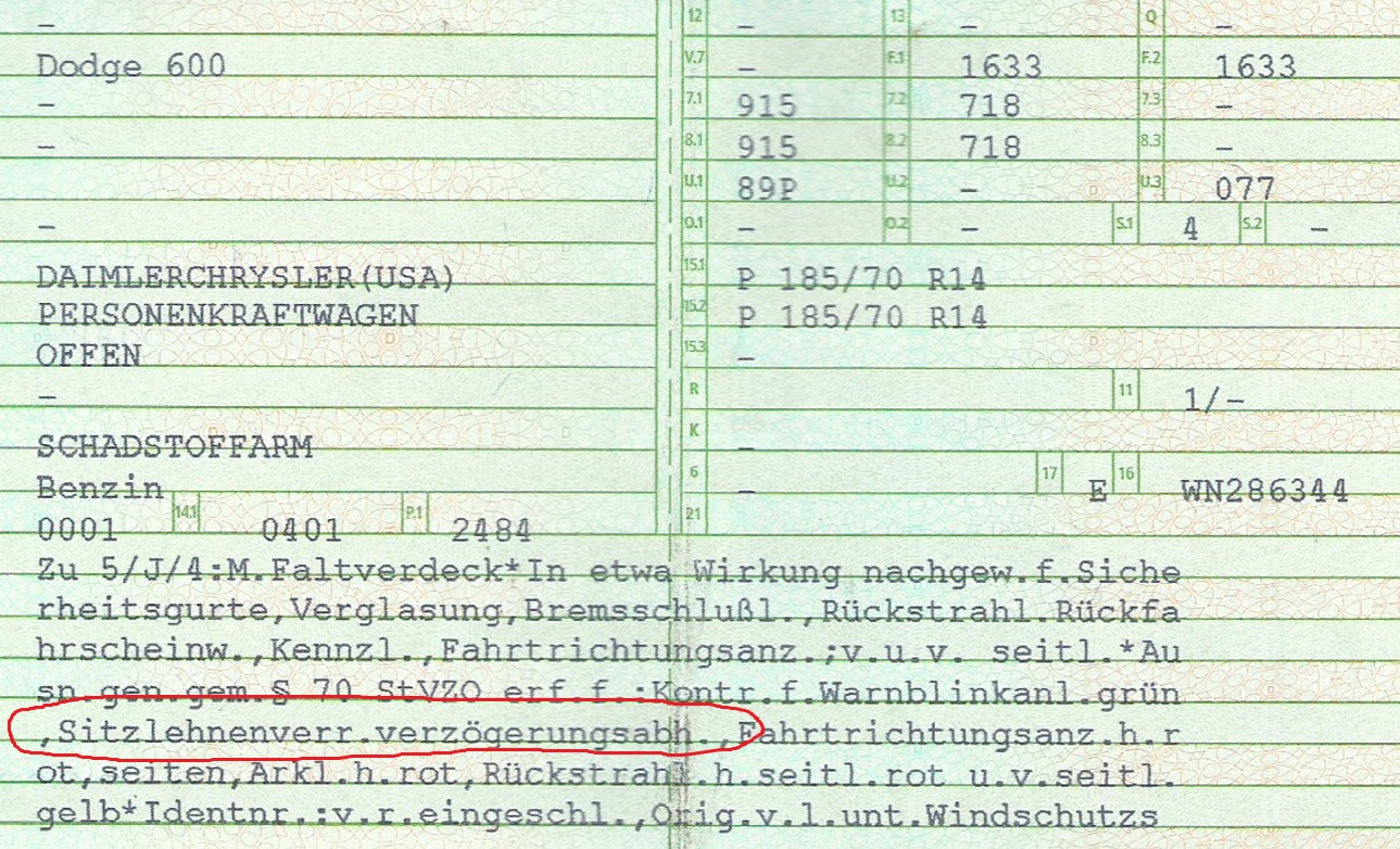 | Schlüsselwörter: | Sitzlehnenarretierung |